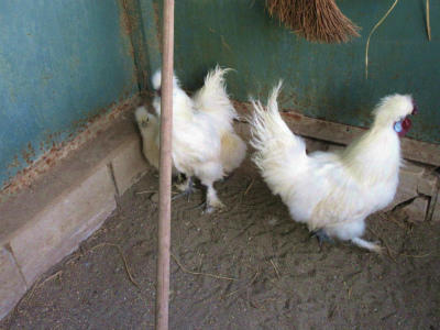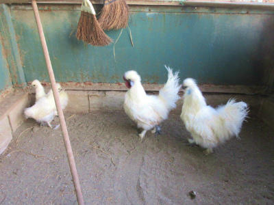 飼育小屋に、五羽の烏骨鶏がやってきました。