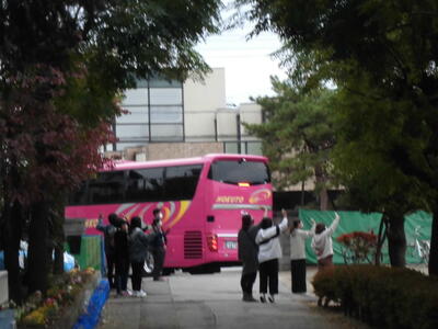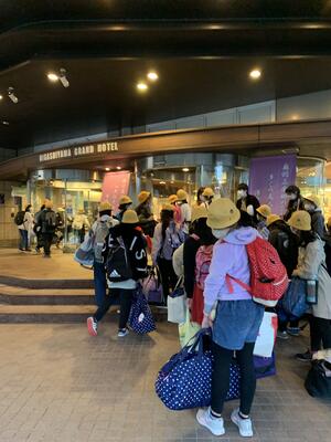修学旅行ですが、先程、朝食を食べ、退館式を終え、ホテルを出発しました。