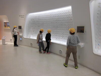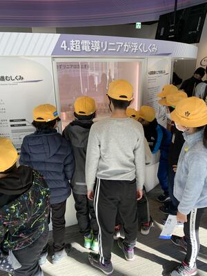 実際に走っているリニアを見て、みんな大興奮です。リニアの仕組みを体験できるコーナーもあり、楽しみながら学んでいます!