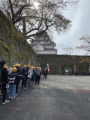 修学旅行ですが、先程、予定通りに鶴ヶ城に到着しました。