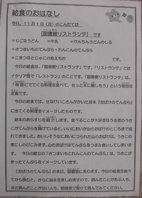 絵本『おばけのてんぷら』に出てくる料理をイメージした献立になっています。
