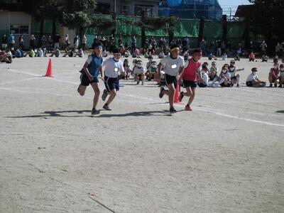 1年生は徒競走(50m走)を、6年生は全員リレーも行いました。