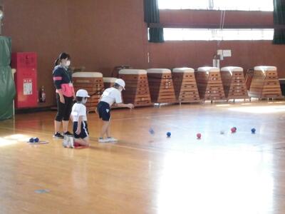6・7・8組の子どもたちが「ボッチャ」「スマイルボーリング」に取り組みました。