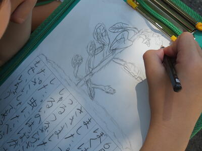 4年生の図工では、「木々を見つめて」という題材を行っています。