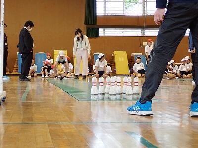 ボーリングをアレンジした軽スポーツで、投球位置からゲートを通過させ、10本のピンを倒すゲームです。