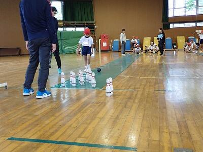 子供たちは、チームにわかれボールを投げますが、簡単そうで難しい!
