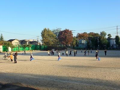 時間です。また、今日も保護者ボランティアの皆さまに、落ち葉掃きを行っていただきました。