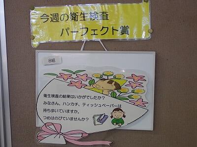 今週の衛生検査パーフェクト賞は・・・・8組さん。