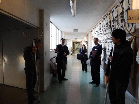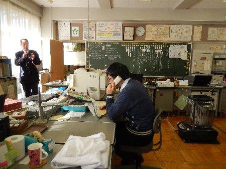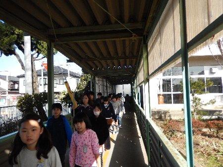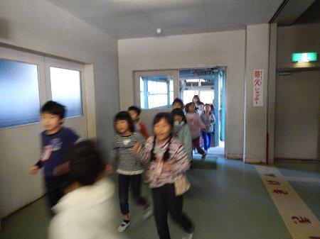 不審者をだれもいなくなった2階に留めているうちに、子どもたちは体育館に避難です。