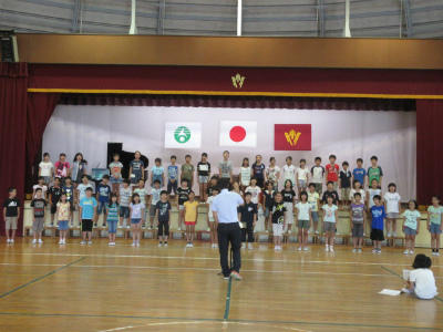 6月の音楽朝会。今月の歌は「カントリーロード」です。