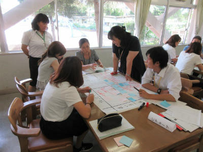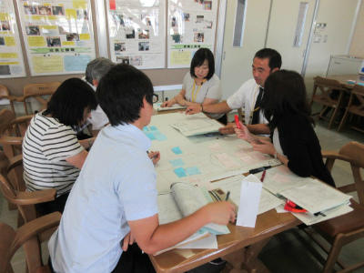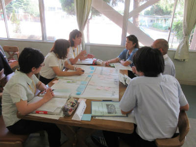 ワークショップ型と呼ばれる方法で、はじめに3グループに分かれて協議した後に、全体で検討を行います。その後、春日部市教育委員会の先生から全体的な御指導をいただきました。