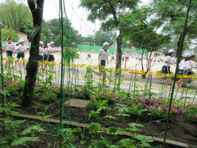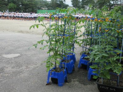 梅雨の雨を得て、サフィニアマックス、ゴーヤ、ミニトマト、ヒマワリなどがすくすく生長しています。