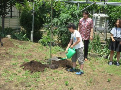 6年生が代表で、いただいた3本の桜を植樹しました。2本は山桜で1本はソメイヨシノです。