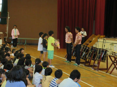 健康委員会は虫歯予防の劇、飼育委員会は活動内容やチャボについてのクイズを行いました。