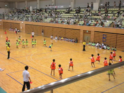 今日は第1日目の低学年の部で、本校からも多くの児童が参加しています。予選リーグを勝ち抜くと、決勝トーナメントに出場することができます。