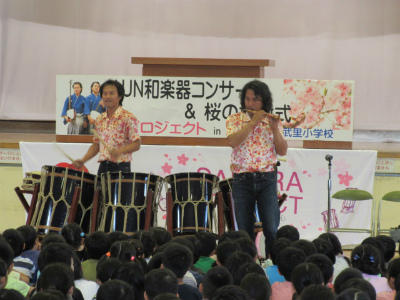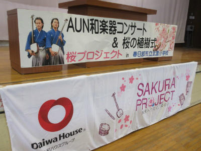 本校では、大和ハウス工業が、未来を担う子どもたちに桜と和楽器を通じて「和の素晴らしさ」をつないでいこうというねらいで行っている「桜プロジェクト」というイベントを実施していただくことになりました。