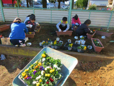 春日部市公園緑地課からいただいたパンジーの花を、プランターに植えました。