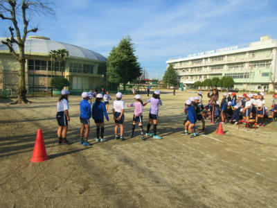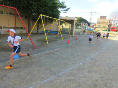 4年生が、いつもより長い距離の(駅伝)リレーをしていました。