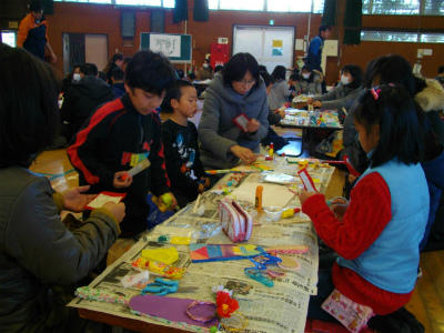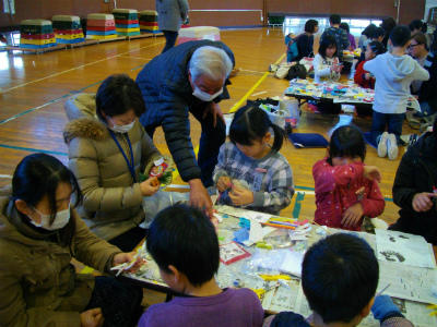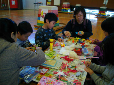 でも、「羽子板のさか田」の皆さんの御指導と、お母さんやお父さんのバックアップにより、オリジナル羽子板が少しずつできあがっていきました。