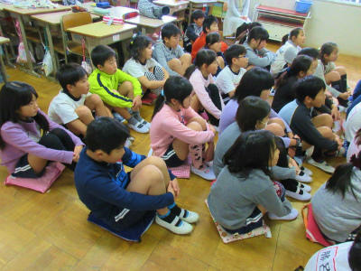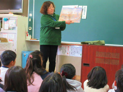 今日は、4年生の教室で「読み聞かせ」が行われました。