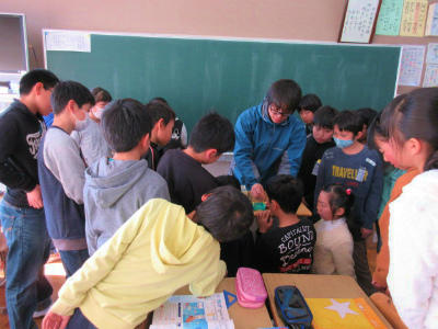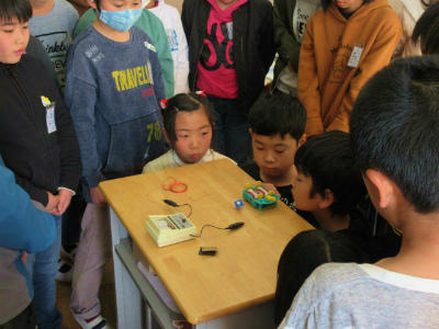 先生の説明を聞いた後、それぞれの実験器具で試してみます。