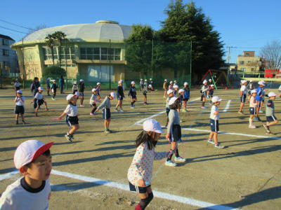 1月のわんぱくタイムは、短なわリズム縄跳びです。