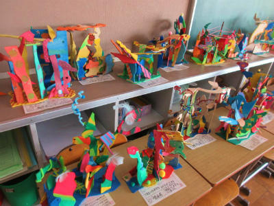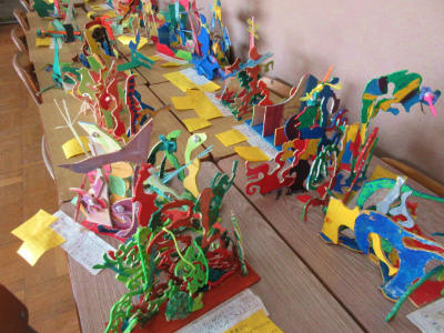 糸のこぎりを使い、時間をかけて仕上げた力作です。明日(17日)の授業参観のときに、展示します。