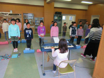 今日の午後、3年生がフラワーヒルで合唱や合奏の発表をします。4時間目に、最後の練習を行いました。