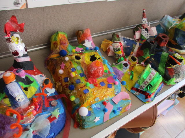 子どもたちの魅力的な作品が、教室に展示されていたり、廊下の壁に掲示されています。今週から、児童の負担にならないように分けて持ち帰らせる予定です。