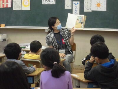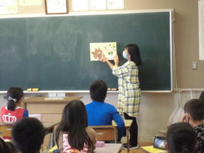 今回は、1年生と4年生で行いました。どのクラスも静かに絵本の世界に浸っていました。他の学年も、これから順番に行っていく予定です。