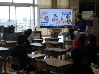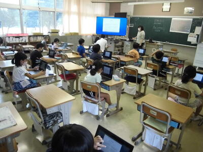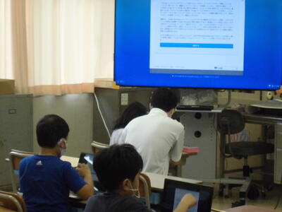 タブレットや大型モニターを活用して授業を進めています。