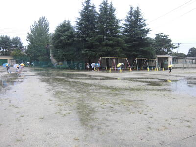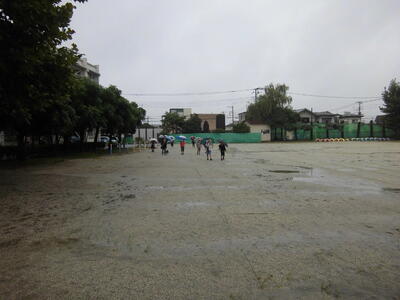 曇り空ですが、久しぶりに校庭で遊ぶことができました。