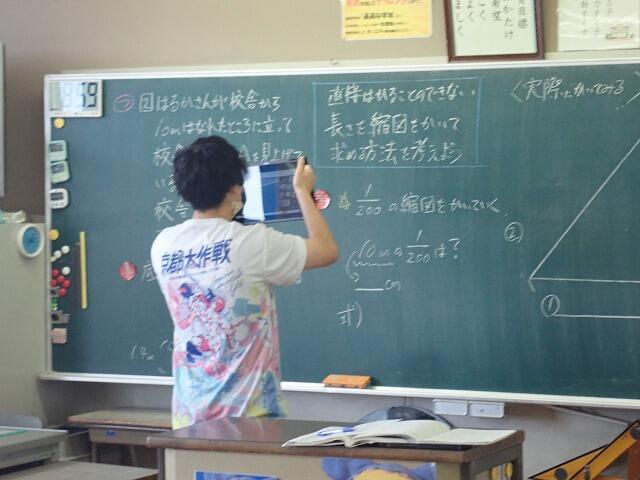 6年1組は算数の拡大図と縮図。定規を使い長さを測ったり真剣に問題に取り組んでいました。
