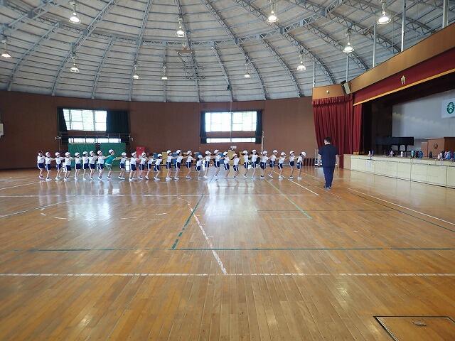 3の1は体育館で体育。今日は学年の運動会練習はなく、通常の体育授業です。