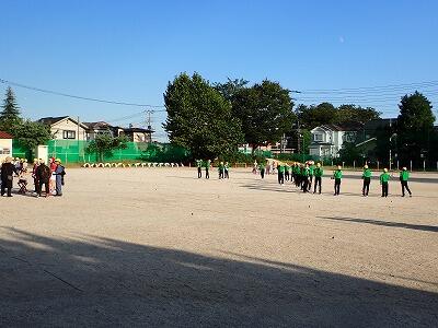 中野運動広場でも活動できるように進めています。各グループの中心は6年生。担当の先生方