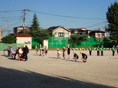 練習終了後、4の1は中学年団体種目の確認を少しだけ校庭で行いました。子供たちが