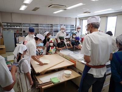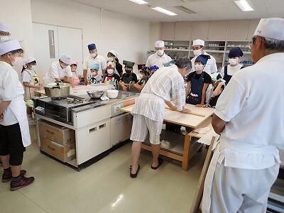 室内では、オルゴールづくり、うどんづくりにドッジビー。厳しい暑さためグラン