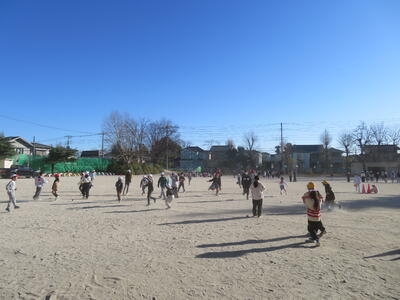 縦割りのグループに分かれ、校庭・体育館のみならず、