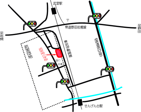 最寄の駅は、東武スカイツリーライン武里駅、またはせんげん台駅です。