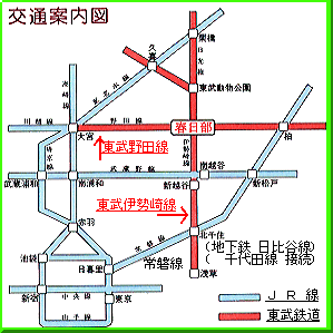 武里駅からは線路に沿って南に歩いて10分弱です。 また、せんげん台駅からは北に15分ほどで、せんげん台駅からのバスも学区内を通ります。