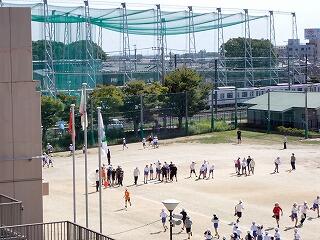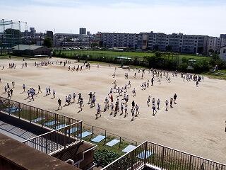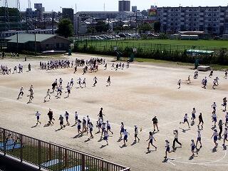 6校時は、5・6年生が校庭で合同練習に臨みます。