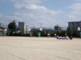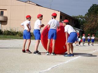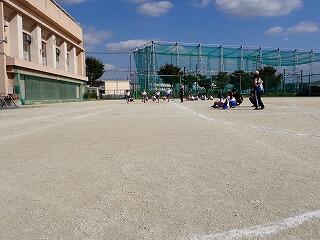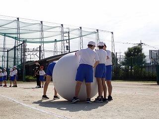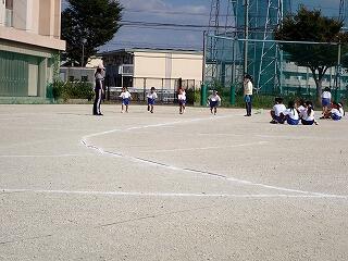 6年生の後ろでは、1の2のこども達は、楽しそうにボールをつかった遊びに取り組んでいました。