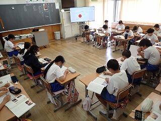 延期となった避難訓練を終えた3校時、1の1の教室を訪問し授業を参観しました。