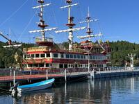 箱根関所の見学をしました。これから芦ノ湖の海賊船に乗ります。