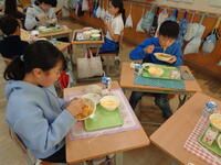 3月19日(火)は給食最終日でした。1年間おいしい給食を作っていただいた調理員さんに感謝の気持ちを胸に今日もおいしい給食を頂きました。
