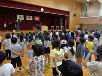 20日(木)に終業式を行いました。校長先生からは、子供たちが1学期に頑張ったこと、宇宙飛行士の若田さんを例に、夏休みに頑張ってほしいことなどのお話がありました。