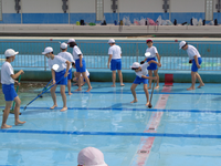 5・6年生がプール清掃を行いました。毎年高学年が清掃をしてくれています。今年度も一生懸命取り組んでくれました。6年生がプールの中を、5年生がプールサイドやトイレや更衣室、排水溝などを掃除してくれました。自分たちが汚れてしまったり、濡れてしまったとしても構わずピカピカにしてくれました。6月にプール開きをし、水泳学習を始めていきます。5・6年生に感謝して使いましょう!