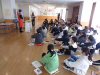 鎌田様は、震災の日のこと、避難所での生活について詳しく話してくださいました。悲しいこと、大変だったことの中にも、子供たちのエネルギーや、支援してくださった人たちへの感謝の思い、人間の素晴らしさについてお話してくださいました。子供たちも、知識でしか知らなかったことを、実際にお話してくださったことで、遠くの出来事ではなく身近なこととして捉えることができました。