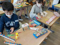 2年生の教室から楽しそうな声が・・・30日・31日で2年生がおもちゃランドに1年生を招待してくれたようです。各クラスそれぞれ特徴のある遊びを1年生に提供していました。どちらのクラスも1年生が楽しむためには・・・ということを考えながら準備を進めてきました。そのかいあって、1年生はキラキラした笑顔で遊びランドを楽しんでいました。人を楽しませる喜びを感じることができた2年生。その姿を見た1年生は、来年新しい1年生を楽しませてくれるでしょう。2年生のみなさん、お疲れさまでした。