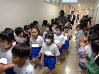 本日の業間休みに1年生を迎える会を開催しました。1年生はメモリアルホールを出発し、2~5年生の前を通り、6年生が待つ体育館へと移動しました。2~5年生は「おめでとう!」と声をかけながら盛大な拍手で迎えてくれました。体育館では6年生が歓迎の劇と合奏、校歌のプレゼントを披露してくれました。また、2年生がアサガオの種をプレゼントしてくれました。みんな1年生を温かく迎えることができました。1年生の皆さん、入学おめでとうございます!